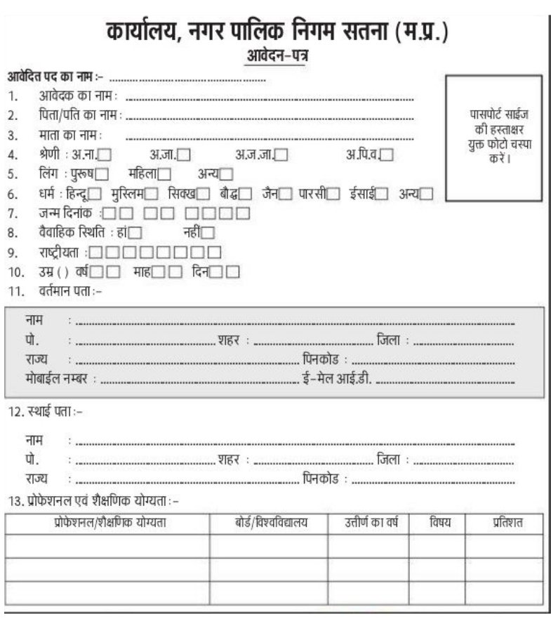 • फॉर्म भेजने का पता : कार्यालय आयुक्‍त नगर पालिका निगम सतना (म.प्र.)